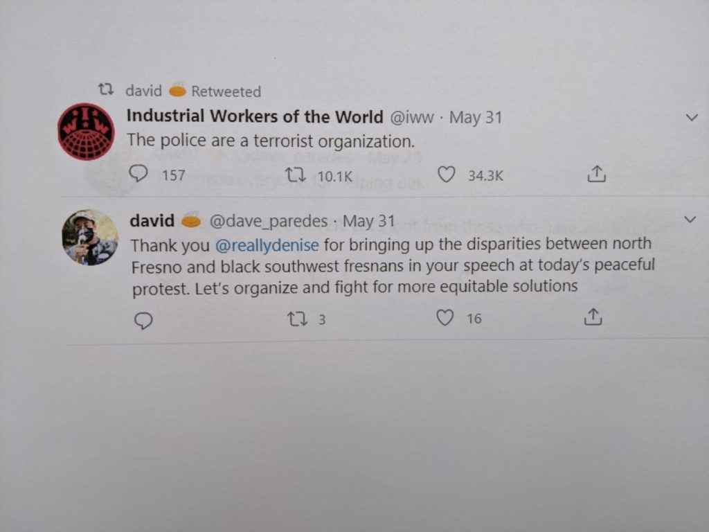 The tweets come from David Paredes, a candidate for Fresno Unified School Board in the Fresno High School trustee area. Paredes is vying to oust longtime Fresno Unified trustee Carol Mills.